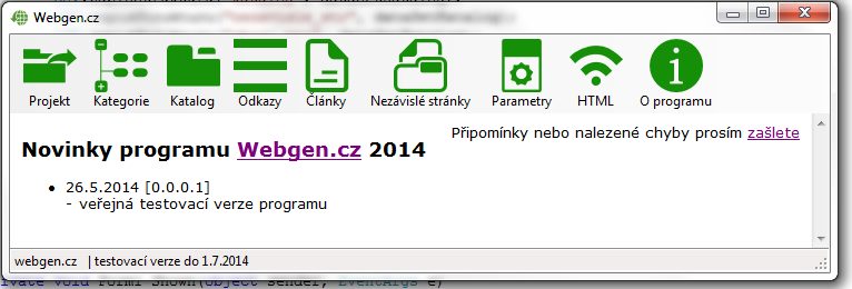Připravujeme nový program WebGen.cz 2014, který bude postaven na jiných základech (CSV soubory místo databáze, net. framework jako vývojové prostředí), ale princip fungování offline generátor zůstane stejný. Režim programu bude jen obdoba "expertu", tzn. generování pomocí šablon. Kódování již bude UTF-8.